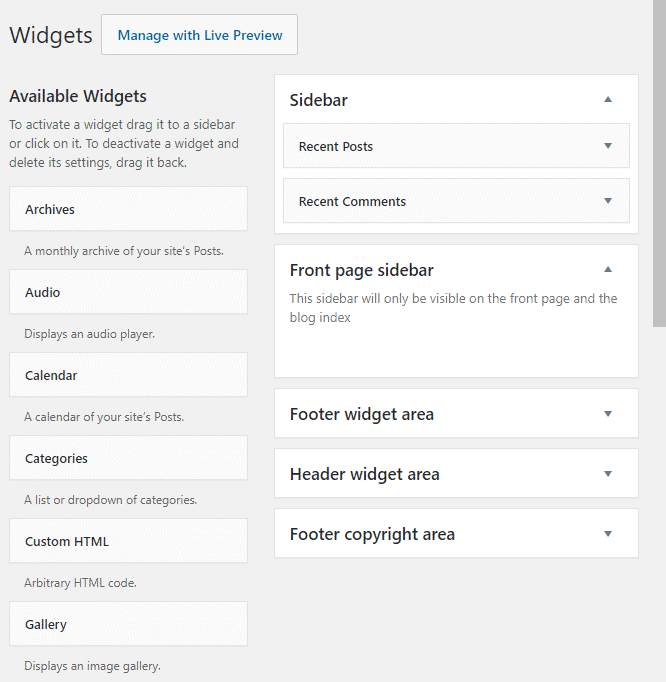 Widget areas